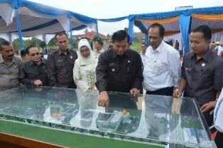 Walikota Firdaus, ST, MT saat meninjau lokasi pembangunan RSUD Pekanbaru.