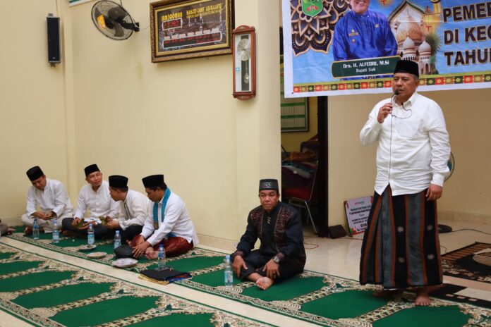 Siak, Gomediaku.com – Bupati Siak, Alfedri, melaksanakan Safari Ramadan di Masjid Jamik Ar Rafi’u, Kampung Buantan Besar, Kecamatan Siak, pada Minggu malam (9/3/2025). Kegiatan ini menjadi ajang silaturahmi antara pemerintah daerah dan masyarakat dalam menyemarakkan bulan suci Ramadan.