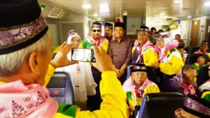 Selama perjalanan, beliau juga menyalami satu per satu jemaah haji dalam kapal serta memberikan doa dan dukungan agar perjalanan mereka lancar serta ibadah haji yang akan mereka jalani diterima oleh Allah SWT. Suasana akrab jelas terasa saat jemaah minta foto bersama beliau, sambil tersenyum dan berbincang ringan, menciptakan kenangan indah sebelum memulai perjalanan menuju Tanah Suci.