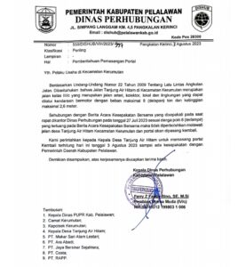 Informasi yang diperoleh, Rabu (9/8/2023) menyebutkan, kebijakan Dishub Pelalawan tersebut bertentangan dengan Berita Acara Kesepakatan Bersama yang telah disepakati antara Kadishub Pelalawan, Camat Kerumutan, Polsek Kerumutan, serta sejumlah perusahaan terdekat. Dalam berita acara yang ditandatangani pada 27 Juli 2023 di Kantor Dishub Pelalawan, sepuluh poin disepakati oleh para pihak termasuk PT Arara Abadi (PT AA), PT Mekarsari Alam Lestari (PT MAL), PT Jaya Bersinar Sejahtera (PT JBS), PT Riau Andalan Pulp and Paper (PT RAPP), dan PT Costa.