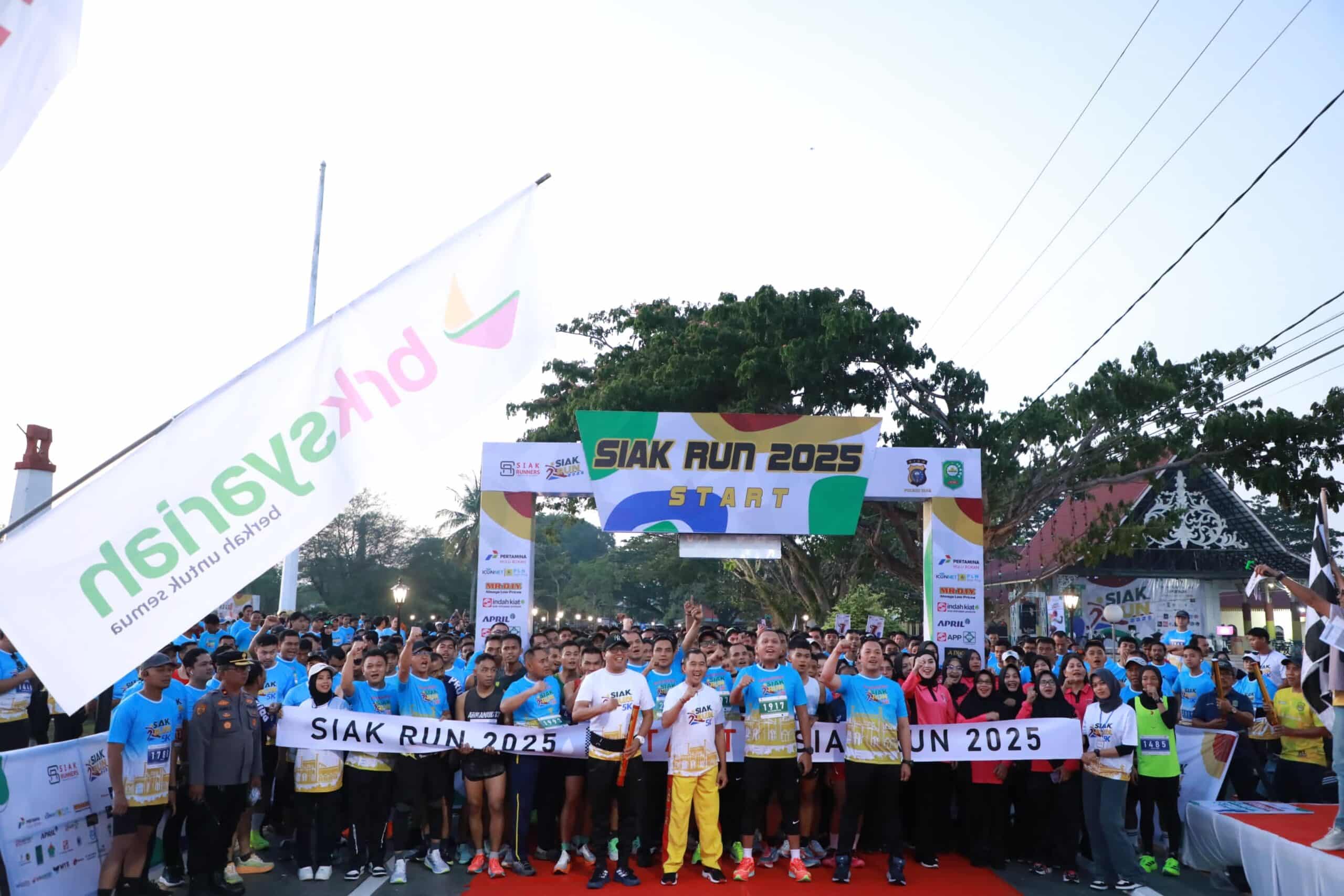 Siak Sri Indrapura , Gomediaku.com – Di ikuti 1.030 atlet lari dari berbagai daerah turut ramaikan pelepasan star Siak Run 5 kilometer dan juga sebagai Roat to Bhayangkara Siak Run (BSR) 7,9 kilometer 2025, berlari dengan nuansa jalanan kota Siak Sri Indrapura dengan ikon kota Istana Sultan Syarif Kasim XII sang Pahlawan Nasional.