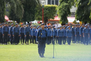 Bupati tampak serius mengikuti upacara peringatan HUT Damkar yang berlangsung di alun-alun kota Semarang.
