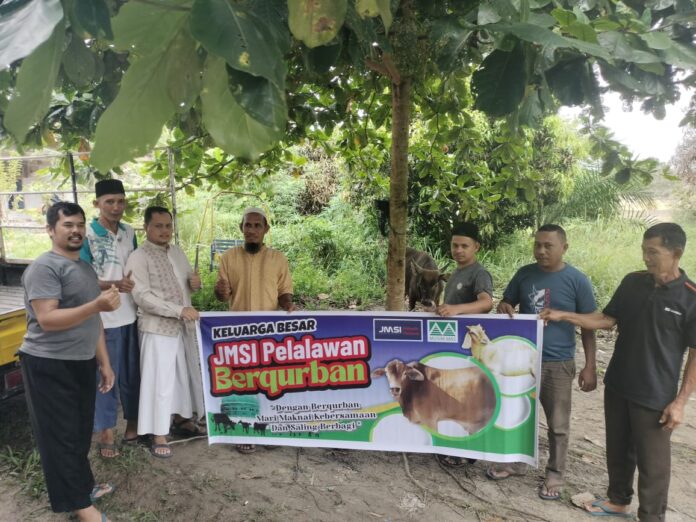 “Alhamdulillah, Keluarga Besar JMSI Pelalawan tahun ini perdana melakukan penyembelihan satu ekor sapi yang dilaksanakan di pemukiman masyarakat,” kata Ketua JMSI Pelalawan Erik Suhenra di sela-sela persiapan penyembelihan hewan kurban.