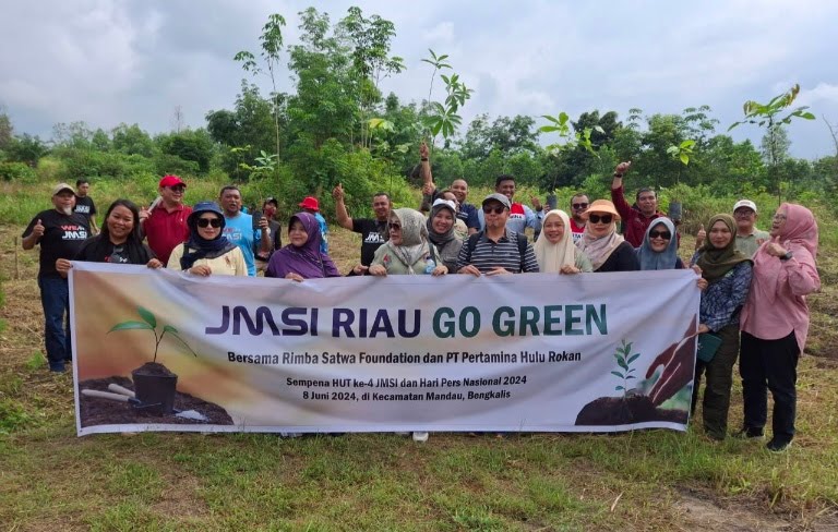 Selain itu juga dilakukan kegiatan penanaman pohon yang dilakukan serentak oleh puluhan orang anggota JMSI Riau. (rls)