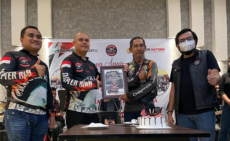 Pekanbaru, Puluhan anggota komunitas Motor Gede (Moge) berkumpul di Kangen 49 Caffe, Sabtu, 12 Februari 2022. Mereka merayakan ulang tahun ke-4 Patagonia Raider Indonesia (PRI) Chaper Riau sekaligus melakukan riding dalam kota Pekanbaru. Acara yang berlangsung meriah ini, diawali dengan siraturahmi dan pemotongan kue pertanda bertambahnya usia komunitas ini.