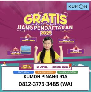 Pekanbaru, Gomediaku.com — Kabar gembira untuk para orang tua dan siswa di Pekanbaru! Kumon Pinang Pekanbaru kembali menghadirkan promo spesial yang sayang untuk dilewatkan. Dalam promo terbaru ini, siswa bisa merasakan serunya belajar di Kumon tanpa perlu membayar biaya pendaftaran, serta mendapatkan berbagai fasilitas gratis lainnya.