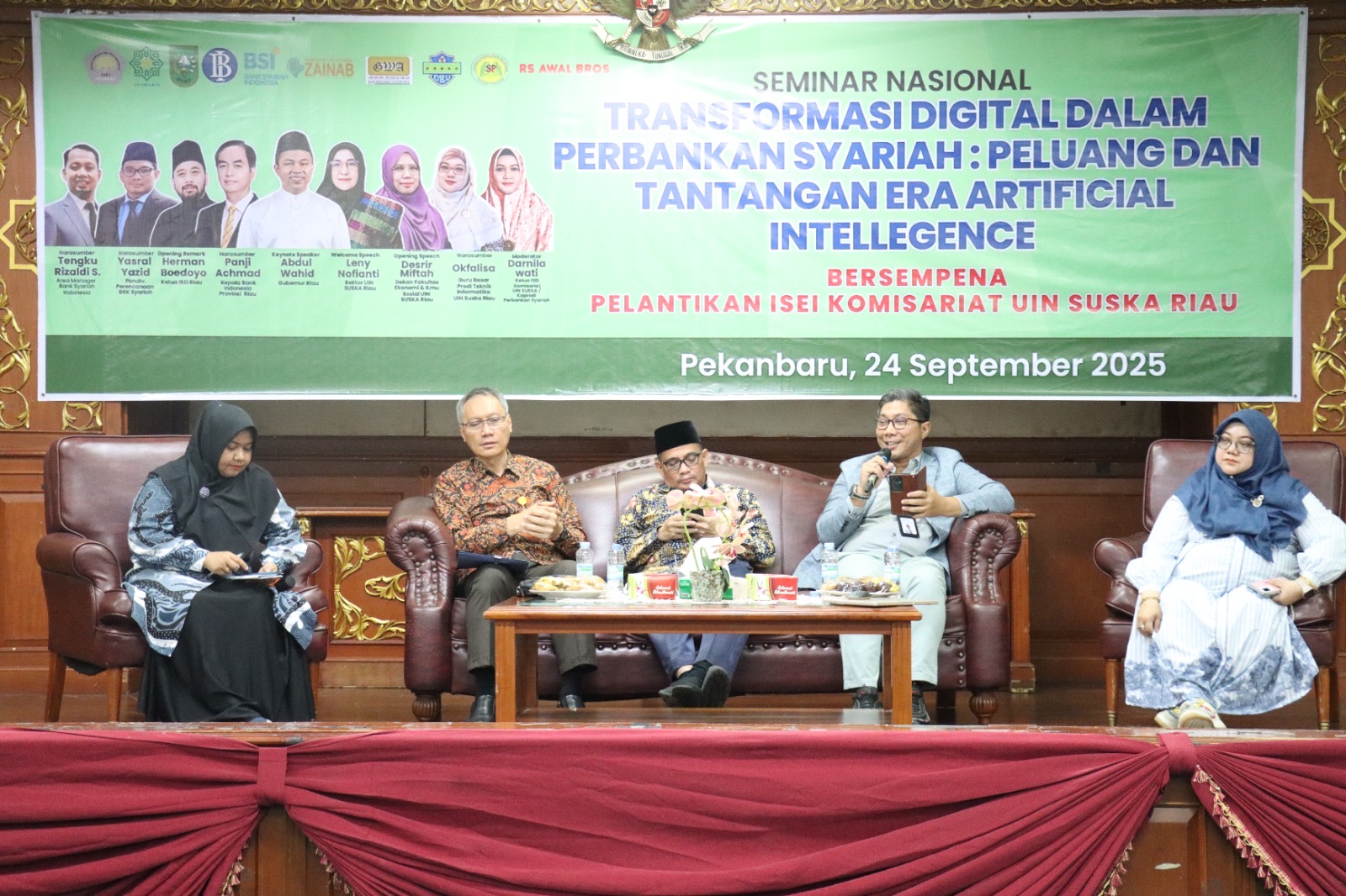 Pekanbaru, Gomediaku.com  – Ikatan Sarjana Ekonomi Indonesia (ISEI) Komisariat Universitas Islam Negeri Sultan Syarif Kasim (UIN Suska) Riau resmi dilantik dalam acara yang dirangkaikan dengan Seminar Nasional bertema Transformasi Digital dalam Perbankan Syariah ; Peluang dan Tantangan di Era Artificial Intelegent pada Rabu, 24 September 2025 di kampus UIN Suska Riau.