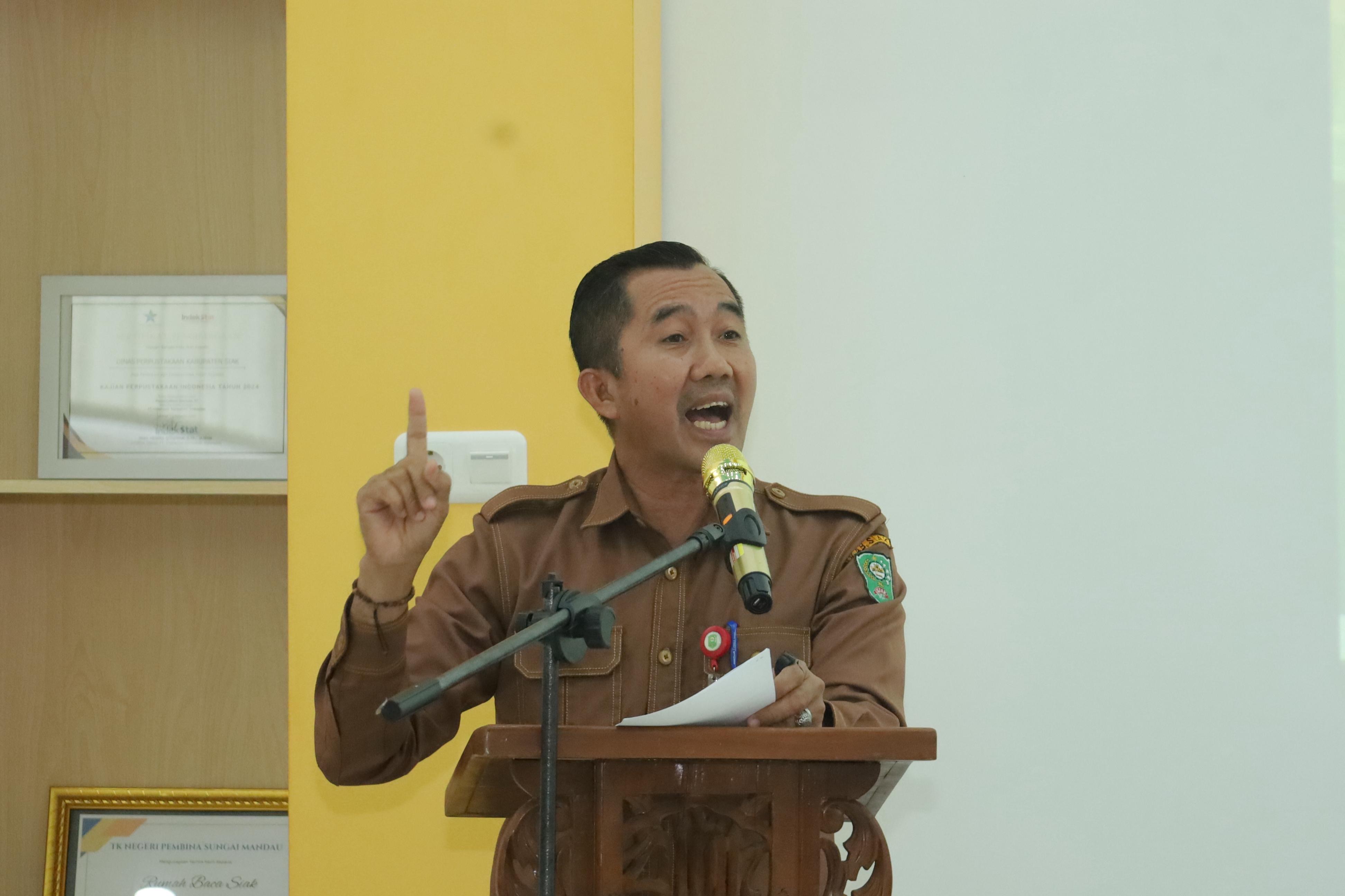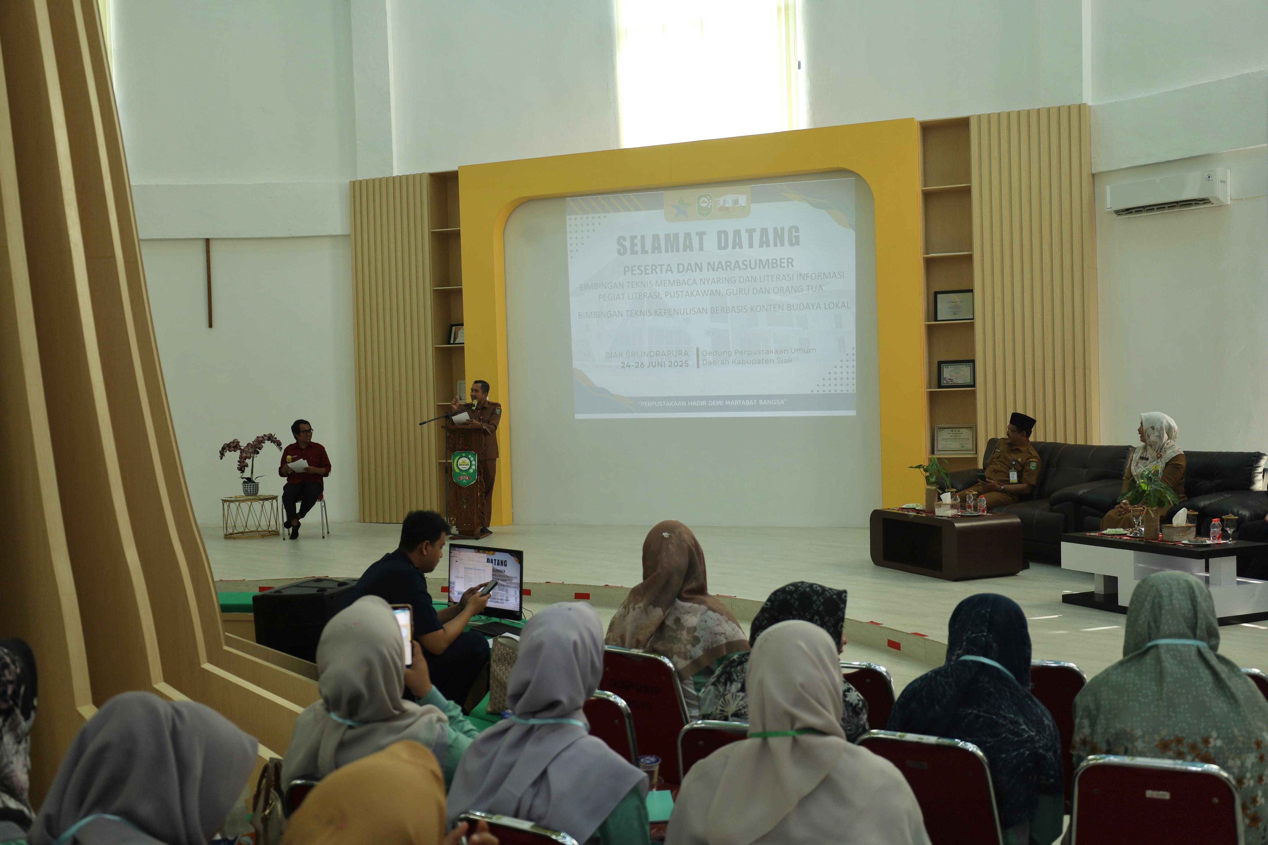 Pj Sekda Siak, Fauzi Asni, dalam sambutannya menyampaikan harapan agar kegiatan ini menjadi momentum memperkuat peran pustakawan dan tenaga pendidik dalam membangun budaya membaca sejak dini.