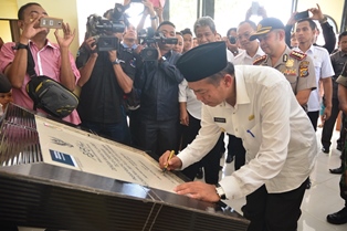 Walikota Firdaus enandatangani prasasti tanda dibukanya Pasar Lima Puluh, Los Pasar Rumbai dan Pasar Teratai Higienis.