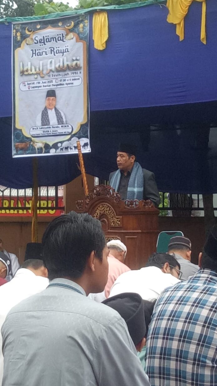 Dalam khutbahnya, Lahmuddin menyampaikan pesan tentang pentingnya berkurban sebagai wujud ketaatan kepada Allah SWT serta bentuk solidaritas sosial antarumat, sebagai sarana untuk memperkuat empati dan kepedulian terhadap sesama.