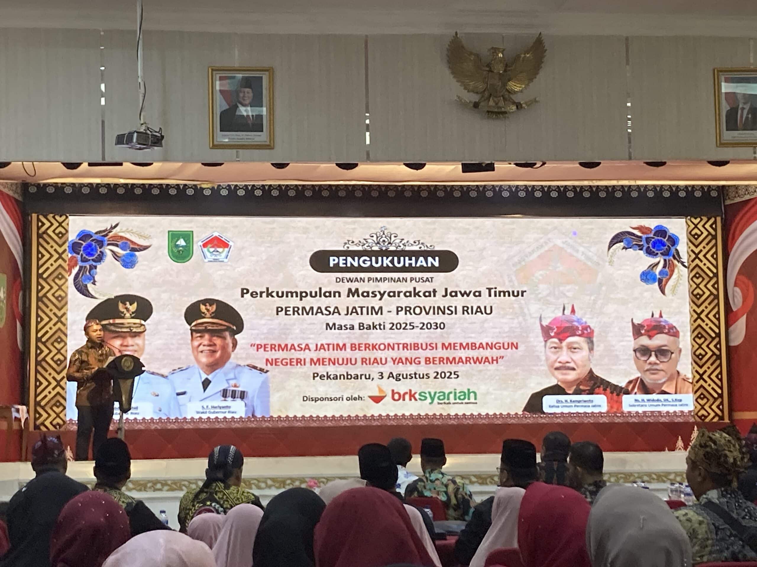 Seluruh jajaran pengurus PERMASA JATIM Riau secara resmi dikukuhkan oleh Gubernur Riau, H. Abdul Wahid, M.Si. Dalam sambutannya, Gubernur menyampaikan selamat dan sukses kepada Ketua Umum Drs. H. Kampriwoto beserta seluruh pengurus.