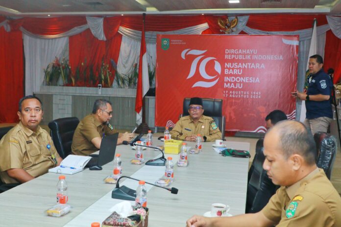 Siak, GoMediaku.com – Sekretaris Daerah (Sekda) Kabupaten Siak Arfan Usman mendengarkan langsung arahan Menteri Dalam Negeri Tito Karnavian pada Rapat Koordinasi (Rakor) Pengendalian Inflasi Daerah Tahun 2025, secara virtual di Ruang Bandar Siak, Kantor Bupati Siak, Senin (20/1/2025).