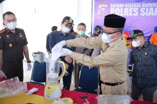 Sabu seberat 824,04 gram itu dimusnahkan oleh Sekda Siak Arfan Usman, dengan cara memblender sabu, kemudian dibuang di sungai Siak. Sementara ganja kering seberat 3.740,64 gram, dimusnahkan dengan cara dibakar.
