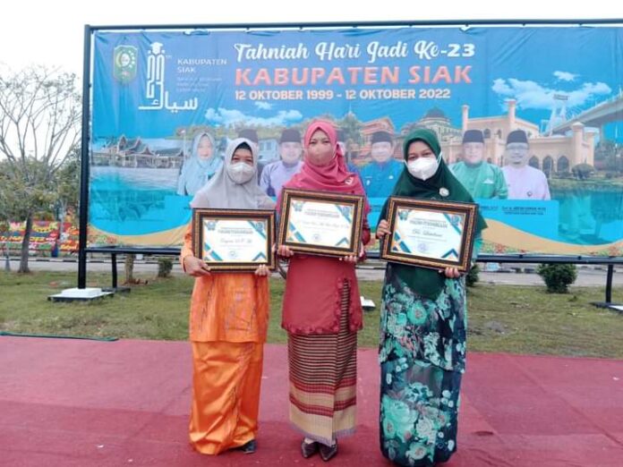 Siak Sri Indrapura (Gomediaku.com) – Tiga Sumber Daya Manusia (SDM) Kesehatan Rumah Sakit Umum Daerah (RSUD) Tengku Rafi’an Kabupaten Siak yang terpilih sebagai SDM teladan tingkat Provinsi Riau diberikan penghargaan oleh Bupati Siak, Alfedri. Penghargaan diberikan saat Upacara Peringatan Hari Ulang Tahun Kabupaten Siak ke-23 di halaman kantor Bupati Siak, Rabu (12/10/2022).