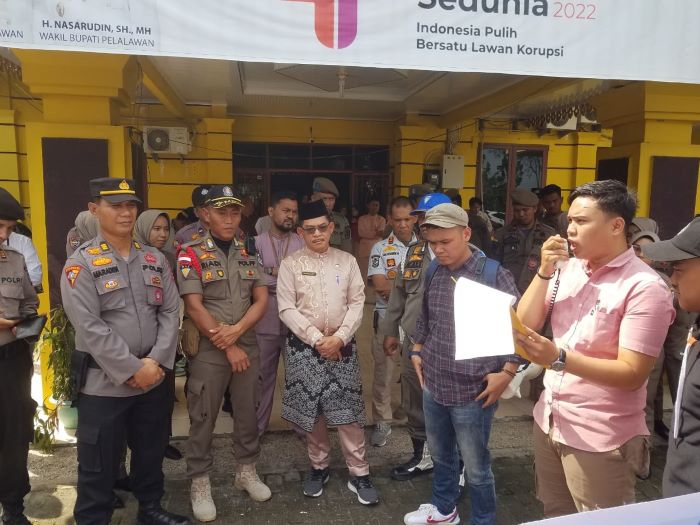 angkalan Kerinci, GoMediaKu.Com – Mahasiswa yang tergabung dari Poros Tengah Mahasiswa Pelalawan- Riau (PTMP-R) menggelar aksi damai di kantor Inspektorat Kabupaten Pelalawan, Komplek Perkantoran Bhakti Praja, Jumat (6/1/2023).