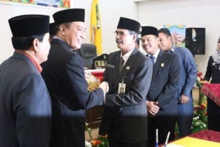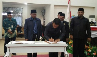 Bupati Suparman menandatangani pengesahan APBD Rohul 2016.