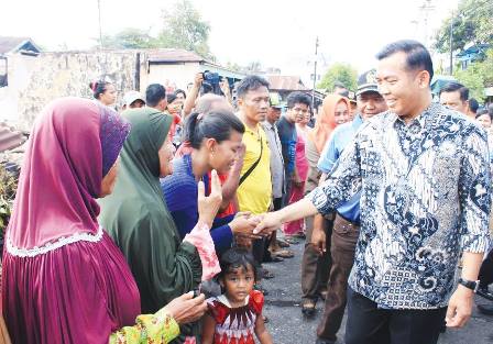 Walikota Firdaus menyalami pada korban kebakaran warga di Jalan Karet, Pekanbaru. (f: hrc)