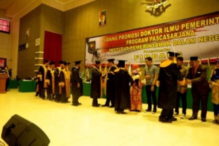 WALIKOTA Pekanbaru H. Firdaus, MT telah resmi manyandang gelar Doktor Ilmu Pemerintahan setelah melalui wisuda pada sidang Senat Terbuka Program Pascasarjana Institut Pemerintahan Dalam Negeri (IPDN) di Balairung Rudini, Jatinangor, Bandung, Jawa Barat, Jumat (15/1/2016)