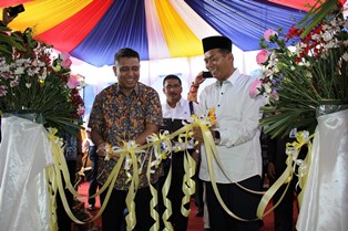 Walikota Pekanbaru DR.H. Firdaus,ST.MT Bersama Director Of Human Capital, General dan IT Daan Achmad Memotong Pita Tanda di Resmikannya Gedung yang Didirikan CSR PT.Angkasa Pura II.