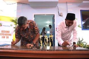 Walikota Pekanbaru DR.H. Firdaus,ST.MT Bersama Director Of Human Capital, General dan IT Daan Achmad Mendatangani Gedung yang Didirikan CSR PT.Angkasa Pura II.